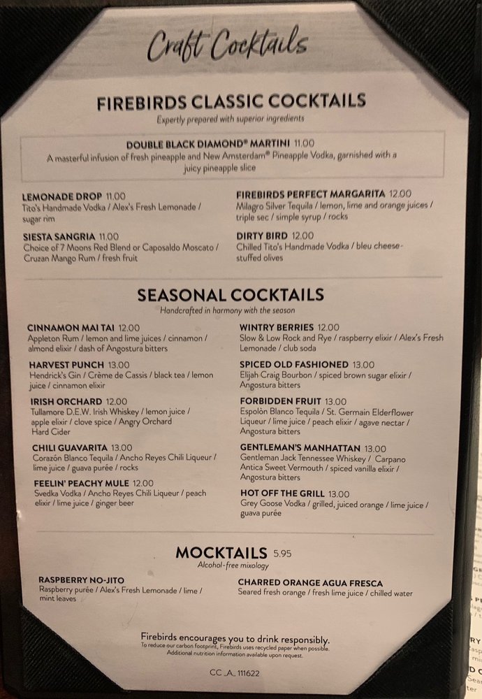 Firebirds Wood Fired Grill Menu (Update 2025)
